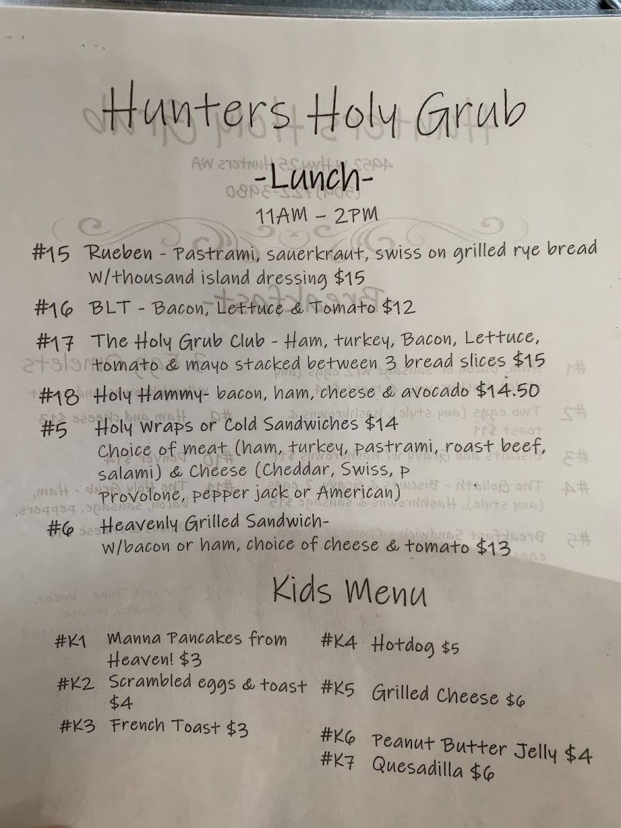 Welcome to Hunters Holy Grub, a delightful American-style restaurant nestled in the heart of Hunters, Washington. Here, you'll experience an explosion of traditional flavors that evoke the warmth of home-cooked meals. The menu boasts an impressive selection of dishes, from tender Chicken Fried Steak—which even the toughest critics rave about—to decadent baked goods that are simply irresistible.